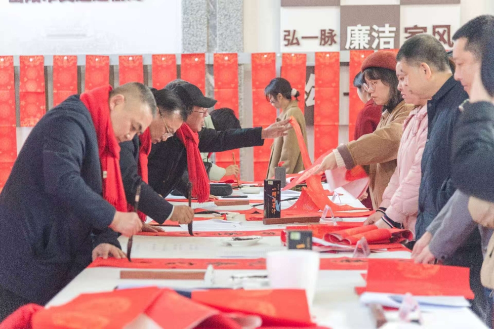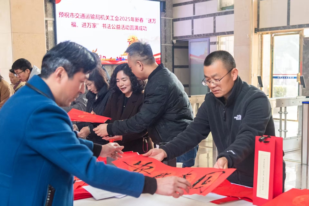 为弘扬中华传统文化,迎接2025年新春佳节,营造喜庆祥和的节日气氛,1月20日,我局组织开展“送万福、进万家”书法公益活动,传递新春祝福,弘扬传统文化。局党组副书记、副局长张建辉,局一级调研员、机关党委书记、市交通运输工会主席熊少先,市公路建设和养护中心党委委员、副主任杨涛广出席活动,局机关干部职工、退休老同志、新就业群体代表及志愿者代表参加活动。