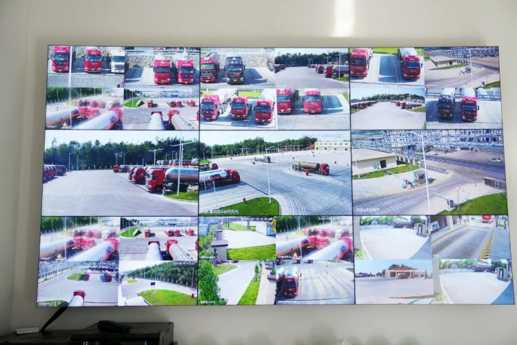 更重要的是,整个场区覆盖着由视频监控、热成像双目云台、火灾自动报警系统、气体监测系统等构成的“智慧安防网”。在智慧指挥中心的中控室内,大屏幕实时显示着车位使用状态、车辆动态、环境监测数据等一切信息。“一旦任何系统发出报警,我们值守的应急处置队伍能在3分钟内赶到现场。”值班工作人员沈勇指着屏幕介绍,此前系统曾通过防爆摄像监测到一名司机长时间未下车,中心立即联系其离车休息,成功避免了一次潜在风险。场内的应急物资仓库、防爆应急仓储间以及稳高压消防水系统等,共同构成了一道从预警到处置的立体安全防线。