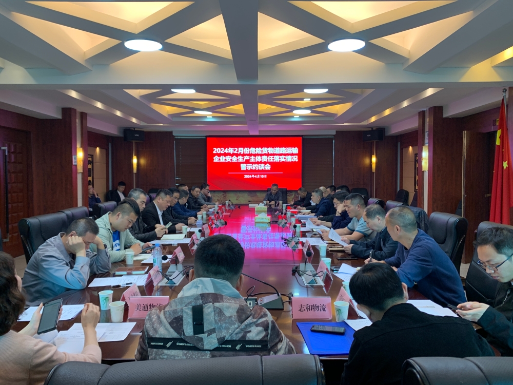 4月10日下午,我局召开2024年2月危货企业安全生产主体责任落实情况警示约谈会。市交通运输综合行政执法支队、市道路运输服务中心、局机关相关科室主要负责人,平江县、岳阳县、云溪区交通运输局负责人、运输股长及13家货运企业负责人参加。