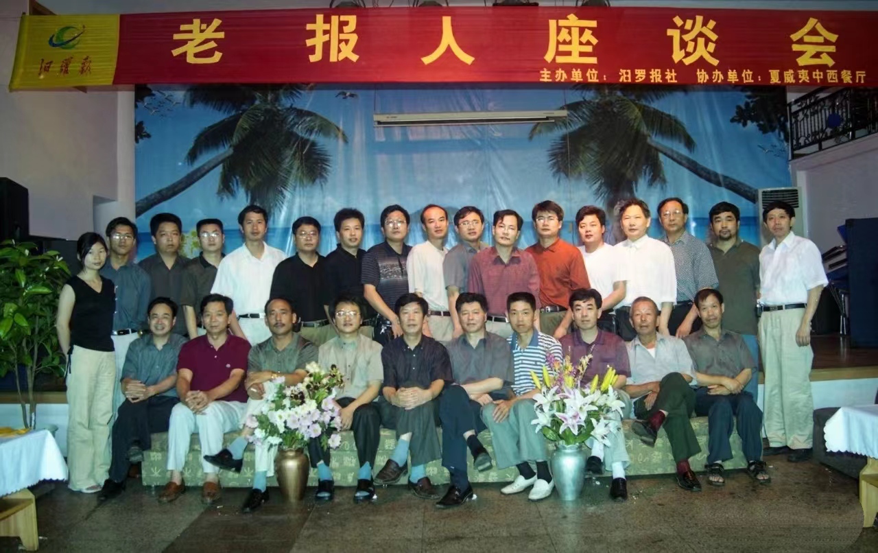 2003年6月27日,汨罗报社召开老报人座谈会。图为与会人员合影。