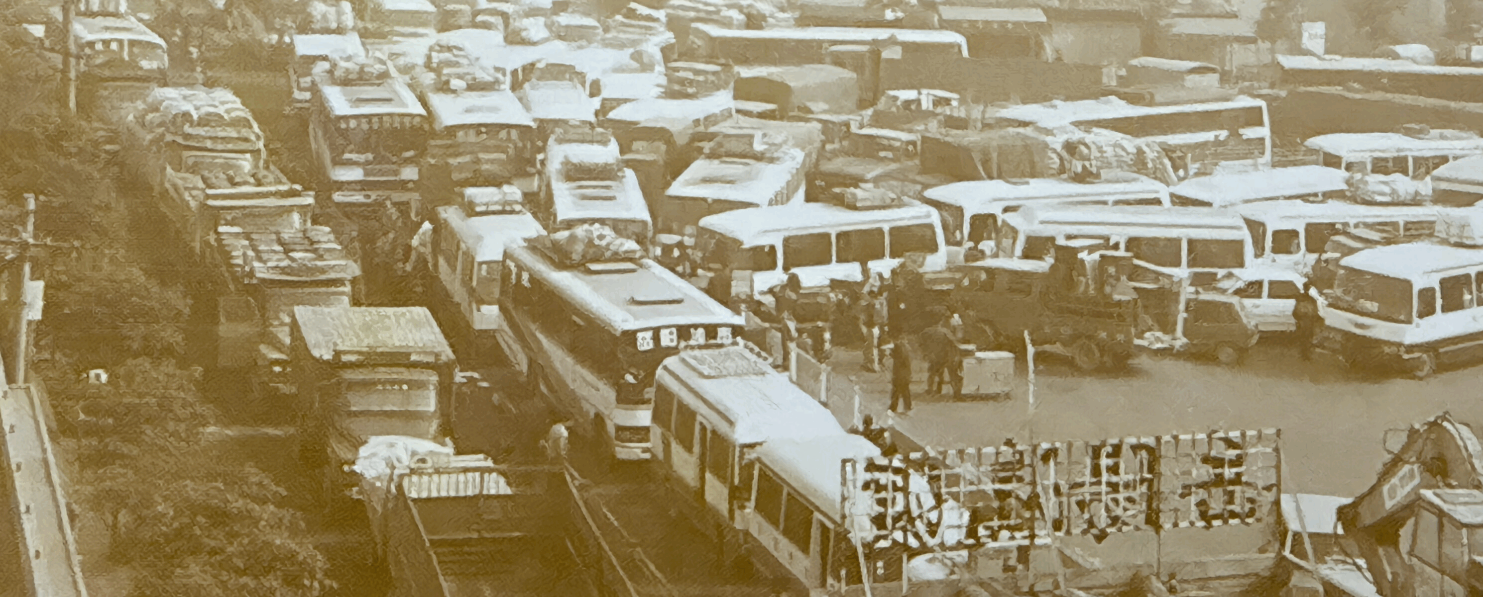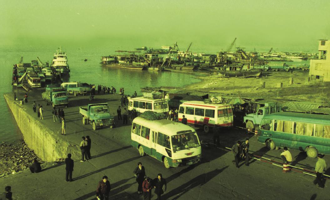 1990年代的北门渡口排队等待上船的汽车