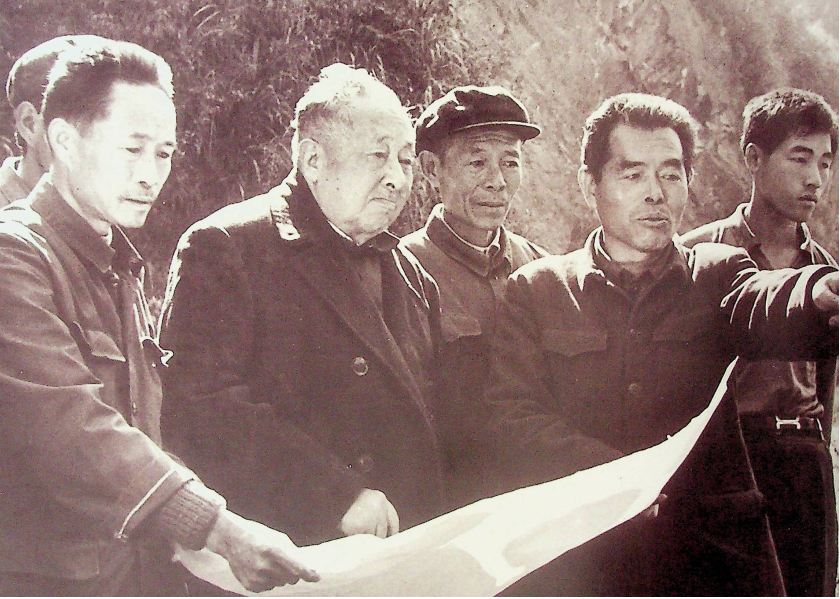 图为喻杰在查看水电站建设情况