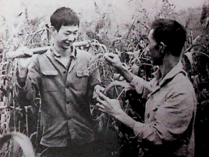 图为喻杰同志教育子孙后代务农