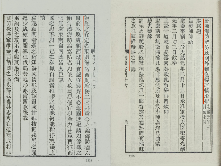 “窃维时事之宜筹,谟谋之宜定者,东则海防,西则塞防,二者并重。”