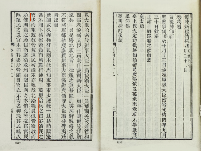 此举正是其一系列“建省奏折”核心思想的实践。在《复陈新疆情形折》等奏疏中,他详细禀报战后恢复情况:“北路迪化等处自克复以来,招徕开垦,户口日增”,并直指旧制之弊:“治兵之官多,治民之官少”,税制更是“事理失平”。他以实绩与严密论述,为设省奠定根基。