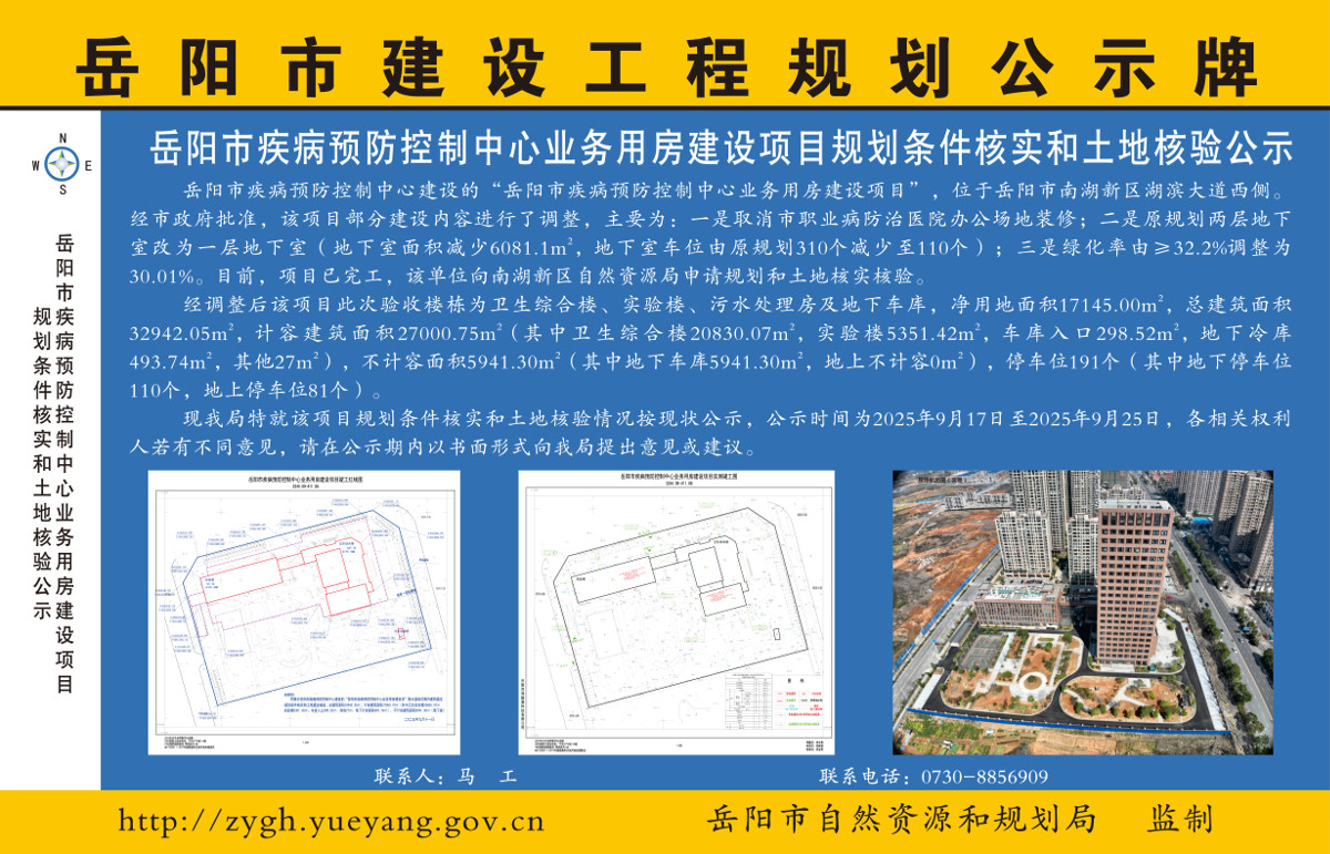 岳阳市疾病预防控制中心业务用房建设项目规划条件核实和土地核验公示