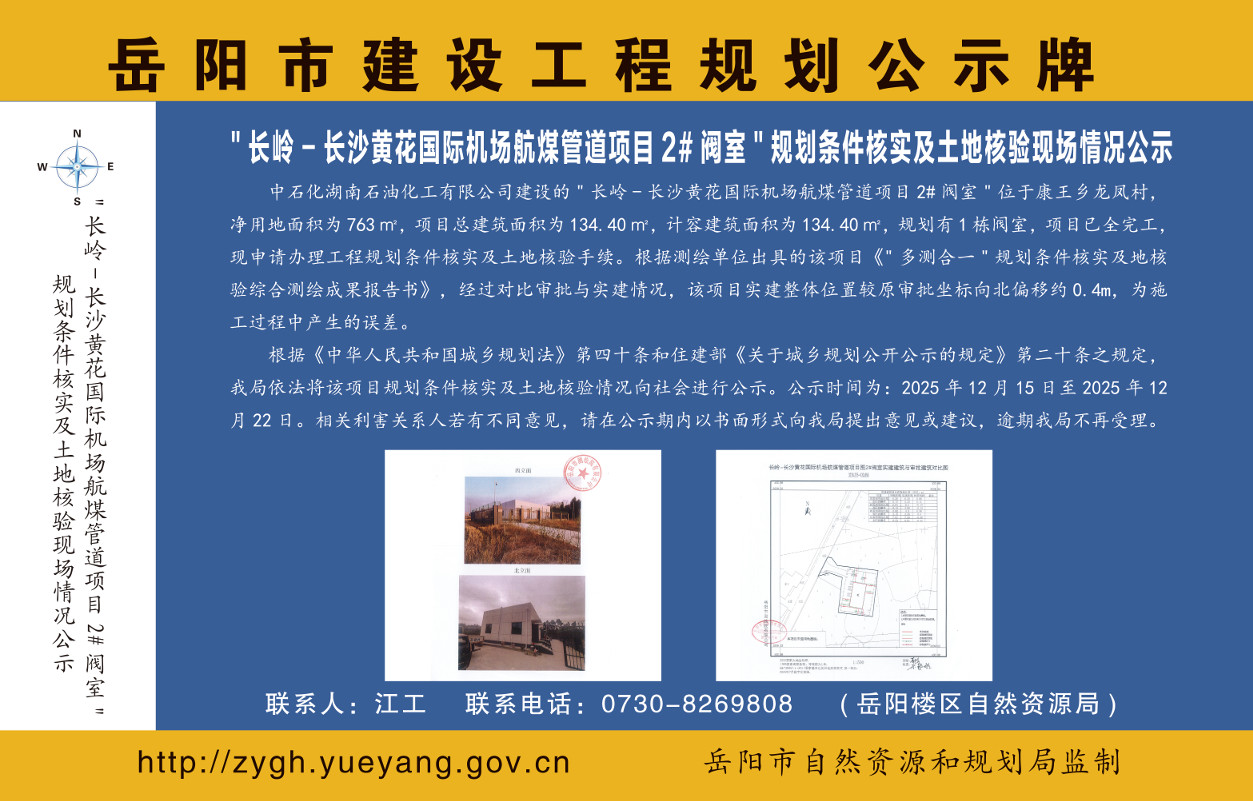 “长岭-长沙黄花国际机场航煤管道项目2#阀室”规划条件核实及土地核验现场情况公示