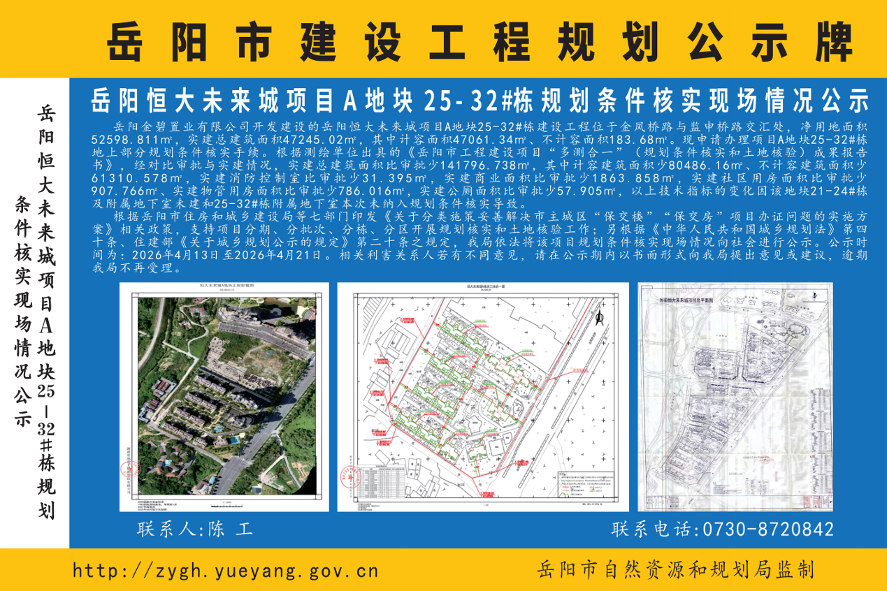 岳阳恒大未来城项目A地块25-32#栋规划条件核实现场情况公示