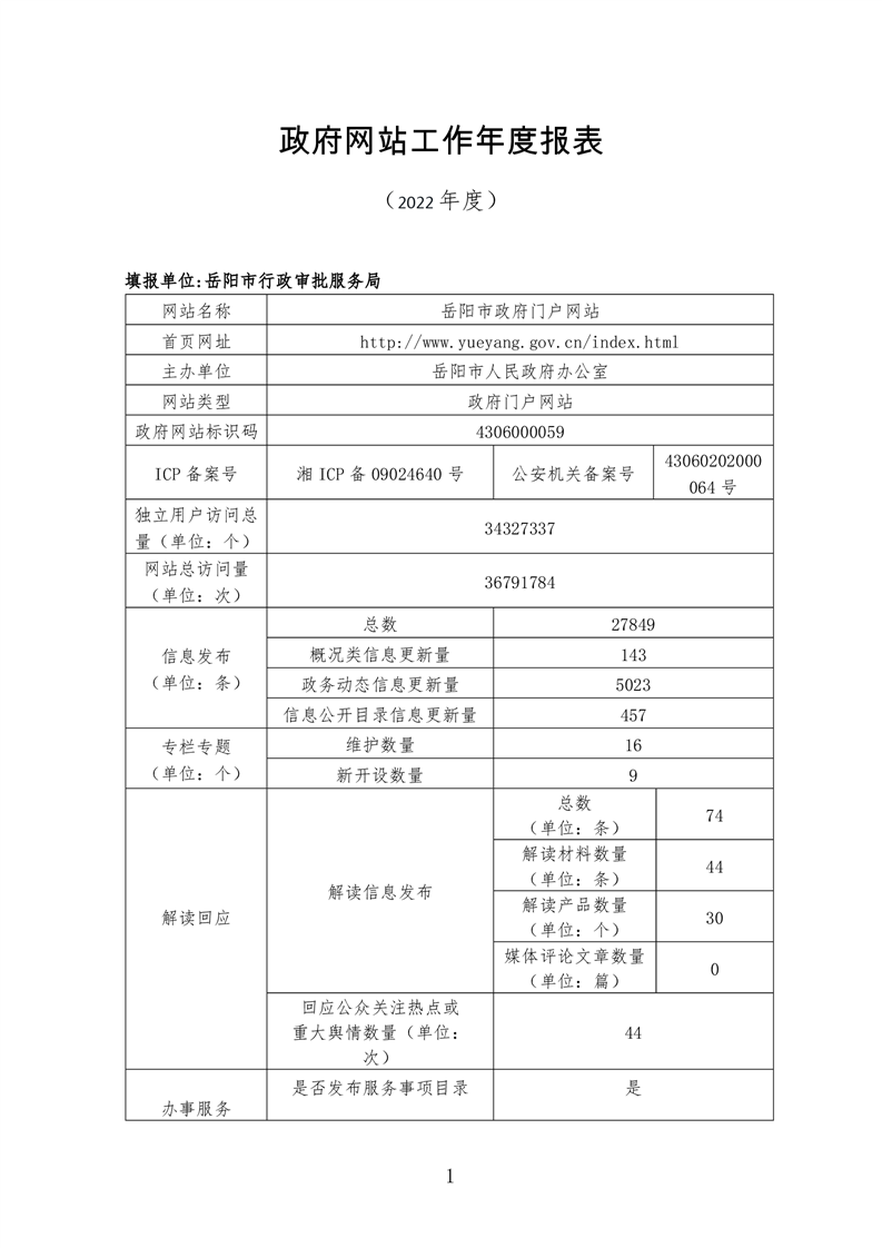 2022年度岳阳市人民政府网站工作年度报表