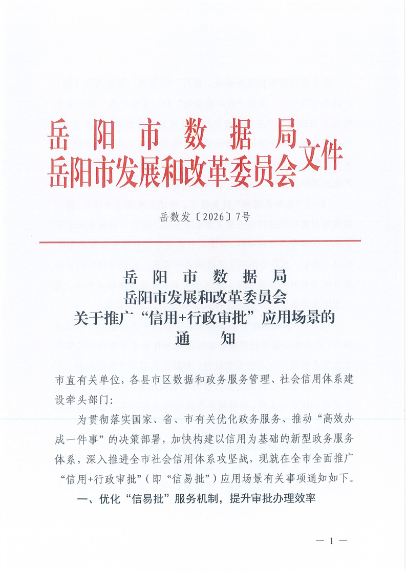 岳阳市数据局岳阳市发展和改革委员会关于推广“信用+行政审批”应用场景的通知