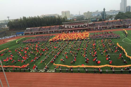 在《五彩华章迎盛会》这一篇章中,学生通过巧妙的队形转换,先后为我们呈现了“知源爱你”的简称、“2016”“知源精神”、“加油”等字样。