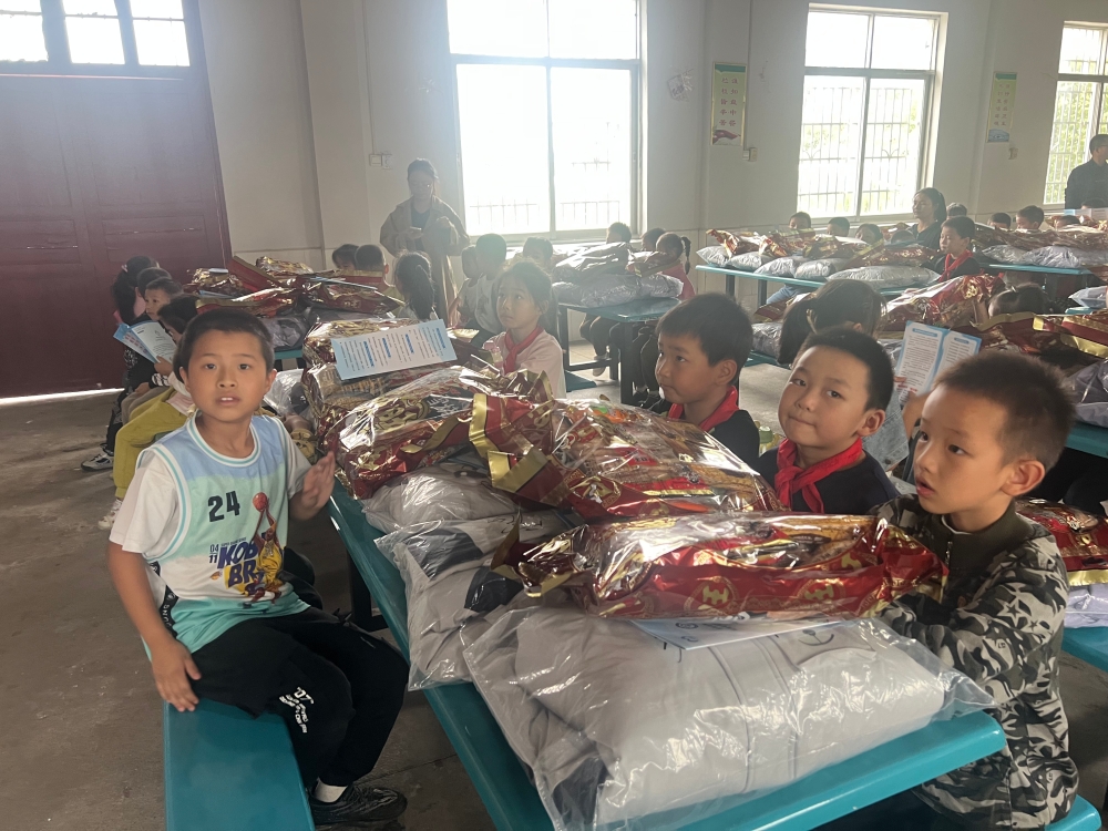 9月24日下午,岳阳县东风小学静谧的校园突然热闹了起来,各班学生们在班主任的带领下有序地进入食堂就座,孩子们好奇地看着几位陌生的叔叔阿姨,转而目光就被座位前方整齐摆放的衣服和零食礼包吸引住了。