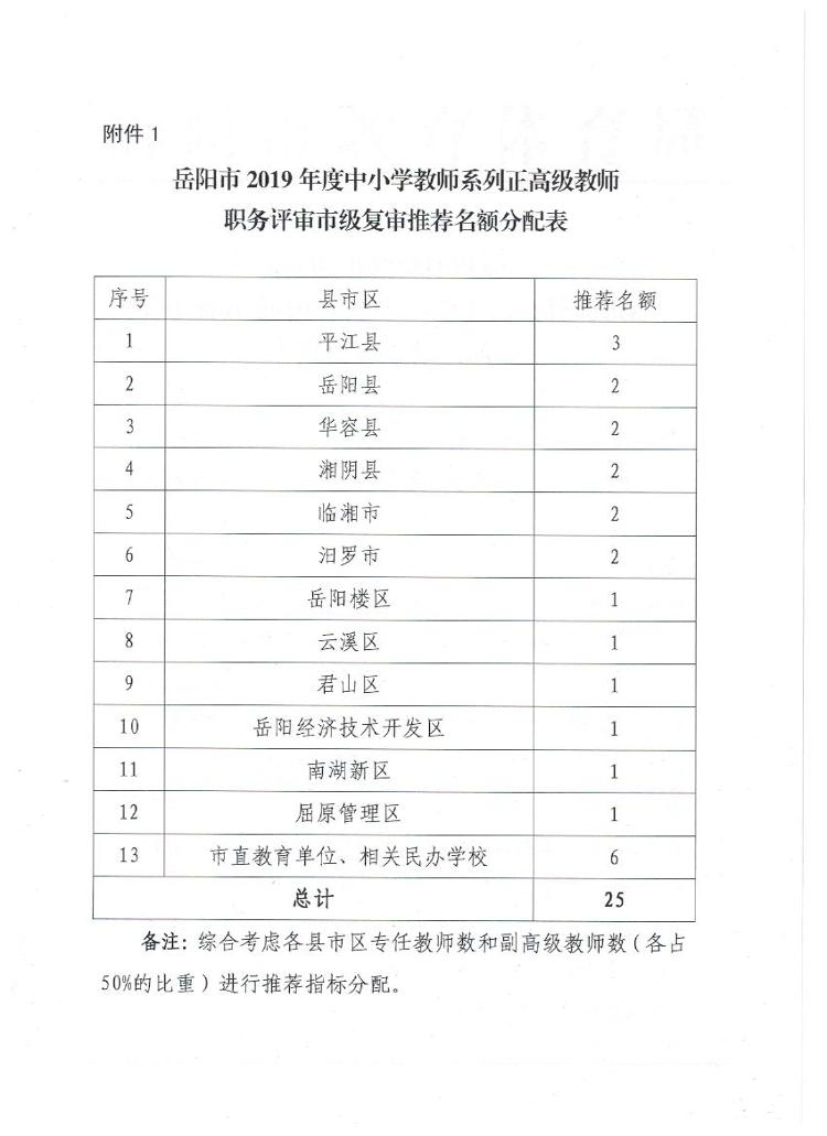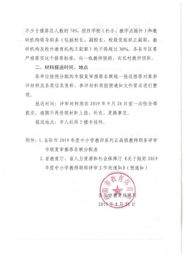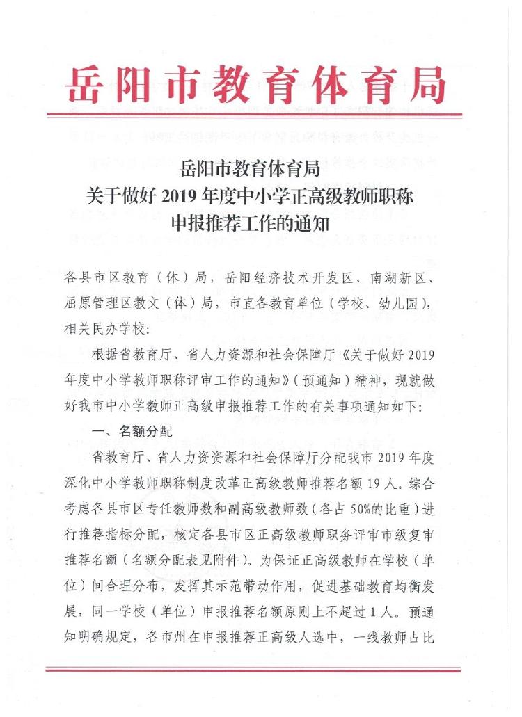 岳阳市教育体育局关于做好2019年度中小学正高教师职称申报推荐工作的通知
