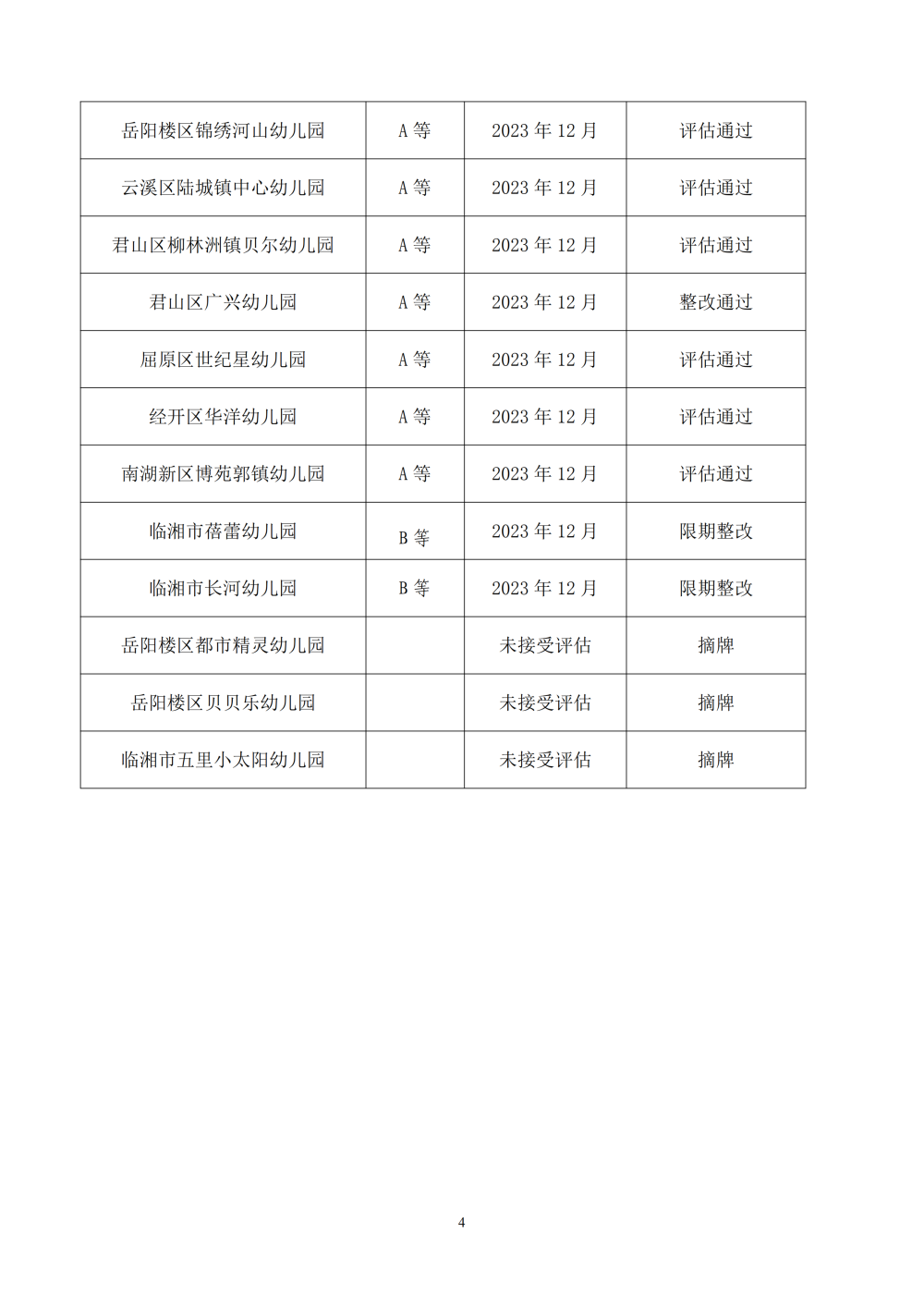 关于2023年岳阳市示范幼儿园督导评估情况的通报(岳教督办通〔2024〕1号)