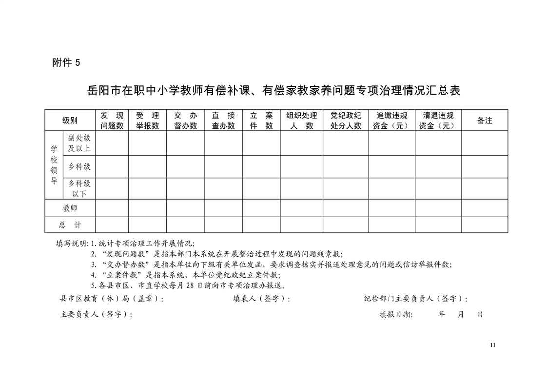 岳阳市教育体育局关于印发岳阳市在职中小学教师有偿补课、有偿家教家养问题专项治理工作方案的通知 岳教体发〔2019〕2号