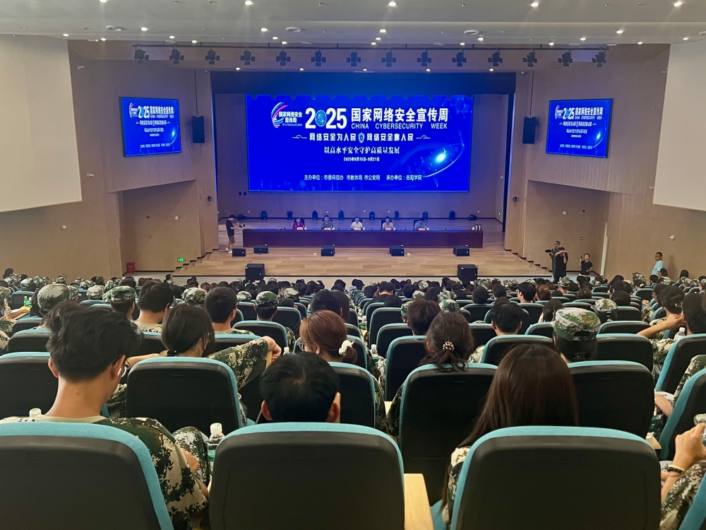 岳阳日报9月16日讯(全媒体记者 田卓灵)9月16日下午,2025年岳阳市教育系统网络安全宣传周校园日活动在岳阳学院大报告厅举行。本次活动由市委网信办、市教体局、市公安局主办,岳阳学院承办。各主办单位相关负责人、市直及部分民办学校分管德育副校长、岳阳学院师生代表等500余人参加活动。