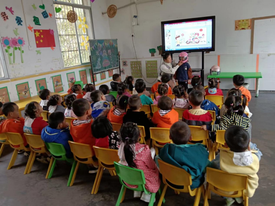 教师们在课堂上根据幼儿年龄特点,利用PPT课件、图片、故事、案例等,开展主题教育活动,让幼儿了解骑行戴头盔的安全性和重要性。