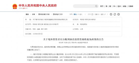 《公告》明确,在2025年1月1日至2028年12月31日期间,境外投资者以中国境内居民企业分配的利润用于境内直接投资,符合条件的可享受税收抵免。