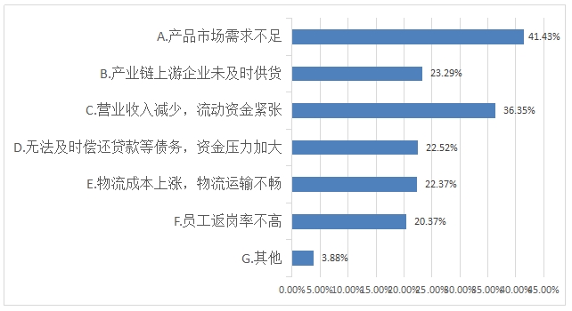 根据市工信局网上问卷调查回复访情况,当前影响企业复工复产的主要问题有五大类: