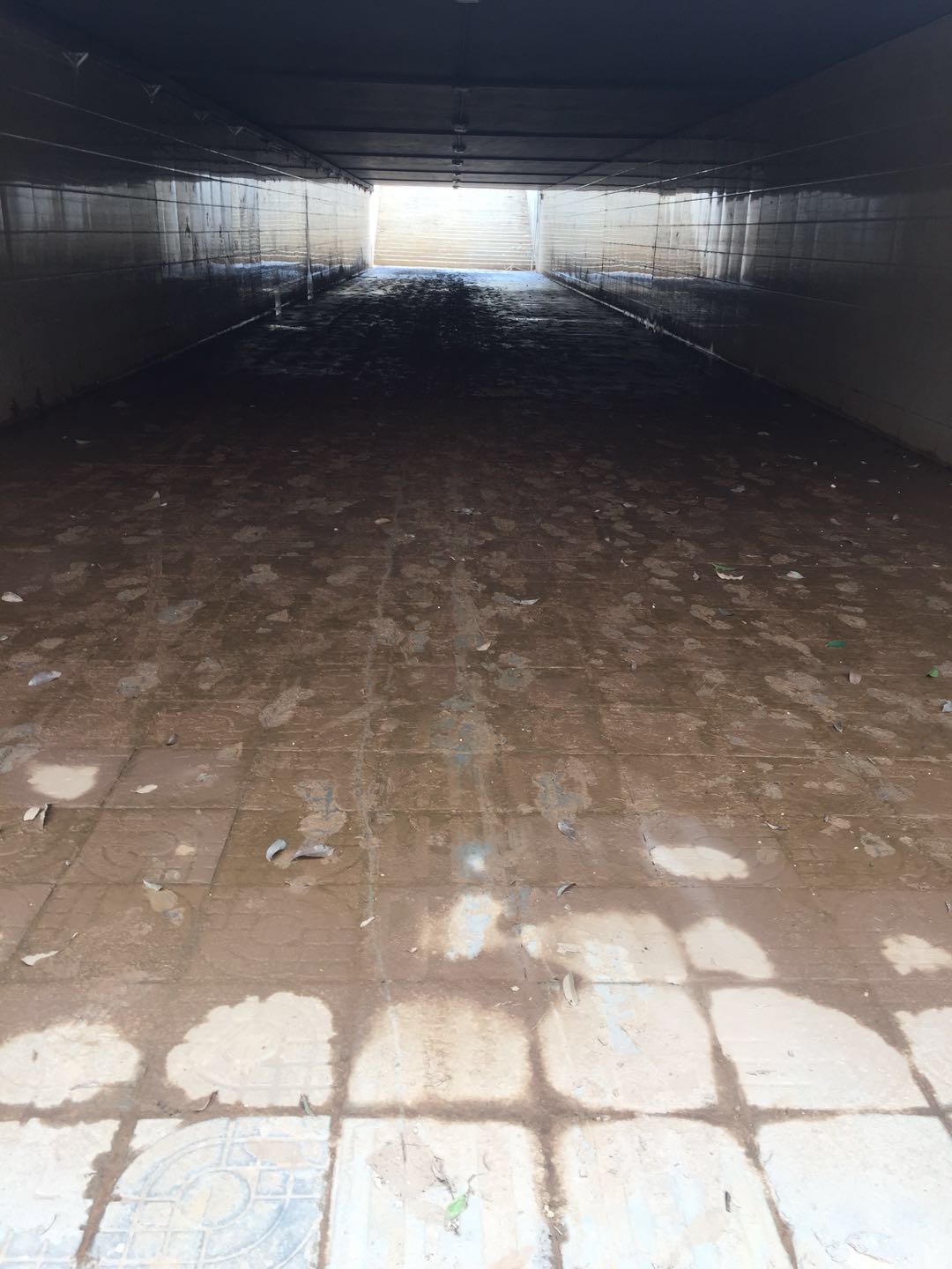 早期,市委市政府明文告之,皇姑塘立交桥为市委重点工程,投资了15个亿,但是该桥人行隧道,只要下雨,就会积压50CM左右的水,根本就无法走人,而且雨水很难排空,即使排空后也会剩下淤泥层层,还是无法行走,从今年三月开始进入雨季,一直到现在,如图片上淤泥,根本没有养路工人进行处理,也没有单位改善为什么积水无法排空,我看到有些市民迫于无奈用大砖块搭建了双项单脚桥梁,这实在严重有损岳阳市容,7月岳阳的雨季将会到来,还请上级部门处理哟.
