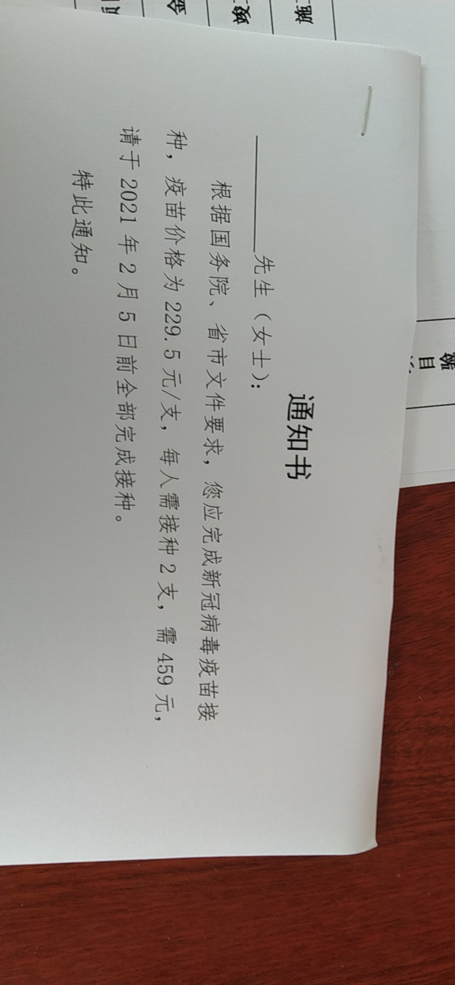 | 内容: | 尊敬的李市长,您好! 我是您治下湘阴想六塘乡龙潭村的一位村民,我想就新冠疫苗收费问题向您咨询一下,请问这个新冠疫苗国务院规定是全民免费接种吗?如果是,那么我们岳阳市辖区内也是不是可以免费接种新冠疫苗?因为现在我们龙潭村村干部通知我们本村重点人群接种新冠疫苗需要每支229.5元,一个人接种两支,也就是每个人需要459元。请问这个通知是岳阳市政府下发的吗?谢谢李市长能够在百忙之中查看我的诉求,再次感谢您! |