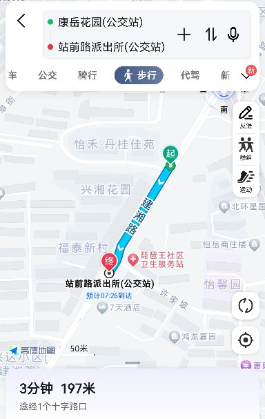 | 内容: | 康岳花园公交站距离红绿灯十字路口太近,容易导致交通拥堵,康岳花园站和站前路派出所站直线距离不到200米,步行3分钟即可到达,可以考虑将两站合并,缓解十字路口交通拥堵情况,同时节省社会资源。 岳阳楼区政协委员 李瑞西 附件1:Screenshot_20230523_072406_com.autonavi.minimap_edit_492857218939378.jpg |