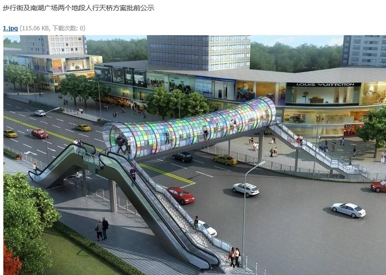 内容: | 尊敬的市领导及各相关局委办领导: 谢谢您百忙中查阅此信。本人在红网论坛看到某岳阳网民发布的“步行街及南湖广场两个地段人行天桥方案批前公示”帖,其中写明了地点是在东茅岭步行街和南湖广场附近准备建天桥的规划,相关图照见附件,从效果图上看此天桥都建了上下扶梯及多色过道顶棚,看上去还是不错的。 我的建议是此桥要建就要建好点,特别是电梯方面及过道顶棚所采用材质应该高档点,保证二十年不变色不坏,以优质形像工程建设,作为岳阳一道新的风景线,再上下扶梯是带电控制的,应该也有顶棚遮挡为好。 我想说的重点是质疑处,质疑是拟建的地址,作为对岳阳市区熟悉的人都知道,岳阳市人流最大,过往人行道最多是东茅岭、国大十字路口,花板桥十字路口、沃尔玛巴陵中路。而拟建规划中人流相对只有以上地区几分之一的南湖广场丁字路口,过个十几米的马路直接走过去更省事,有几个行人会去天天一上一下走天桥,难道都没坐过扶梯,这天桥可不是游乐设施,以后可能成晒太阳的空桥啊。加上南湖那路不是主干道,车流人流与巴陵中路,岳阳大道,土桥路没法比,相对这三个地方更需要这种过街天桥架设,方便更多市民出行,让部份机动车道可以封闭快速通行,以达到缓解交通压力的目的。 再一个架个天桥在南湖广场正面,更加影响了从南北两方向看南湖广场或看南湖大道方向的视觉,被一天桥所挡,一副美丽的山水画中间被一桥所挡了。从这方面看南湖广场正面建此天桥,也不如在花板桥十字路口、国大十字路口、沃尔玛巴陵中路段更加便民和实际。 以上质疑及建议敬请重视。