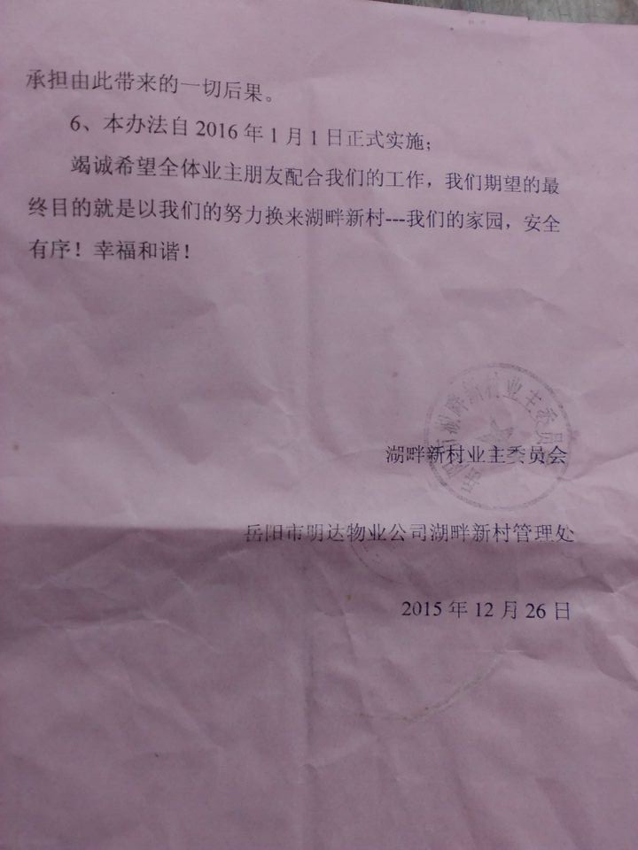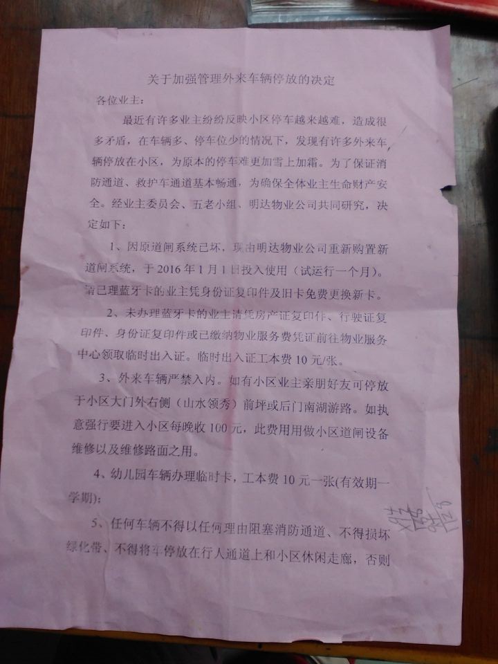 内容: | 尊敬各位领导您好,我是湖畔新村的一名住户,在2015年发布“关于加强管理外来车辆的停放的决定”,发布“决定”在物业处无法得知收费依据,所以特此向政府部门寻求答案。 1、“决定”上未注明具体钱数。在业主前往物业交钱时,询问具体收费标准依据,其工作人员一概不知。询问很多实际问题,物业工作人员也不能解决该问题。只收费,不回答。 2、“决定”上说明是通过小区业主委员会的商讨决定。但是其“决定”并不符合我小区具体情况,并不能实际解决小区停车难的问题。第一、小区实际车位并不够每户一个停车位。第二、小区每户并不只有一台车辆。第三、小区住户有亲人、亲属车辆临时停放并没有解决。 3、“决定”上把小区停车难得问题归结于外来车辆的问题,我觉得根本就不是根本原因。以此原因收费,太过牵强。 4、小区内幼儿园车辆临时卡,只需10元一张,有效期都是一学期。而本小区居民费用却高达310元(只有收据)。 5、本人觉得我身为该小区业主,在购房时就已经出了公摊费用,再停车不该另外收取管理费用,而物业收取该项费用后,也不能保证我们的车辆不受损害。而且每年我们也出了物业管理费。 6、收取费用,并没有注明该项费用对应的服务内容。业主缴纳费用也只是能够进入小区而已。而且该项费用也并没有进行公示。 综上所述,该项“决定”作为业主我既没参与,也没有得到应有的知情权,而物业只用沉默来代替,业主怕其车辆进不来,许多业主被迫支付该项费用。 另外听以前有车的业主说,以前也办理过两次该业务,但也并没有实行很久。 我希望相关领导可以核实并且帮我们解答疑问。谢谢! 附件1:uploadfiles/201602/20160201155250804.jpg |