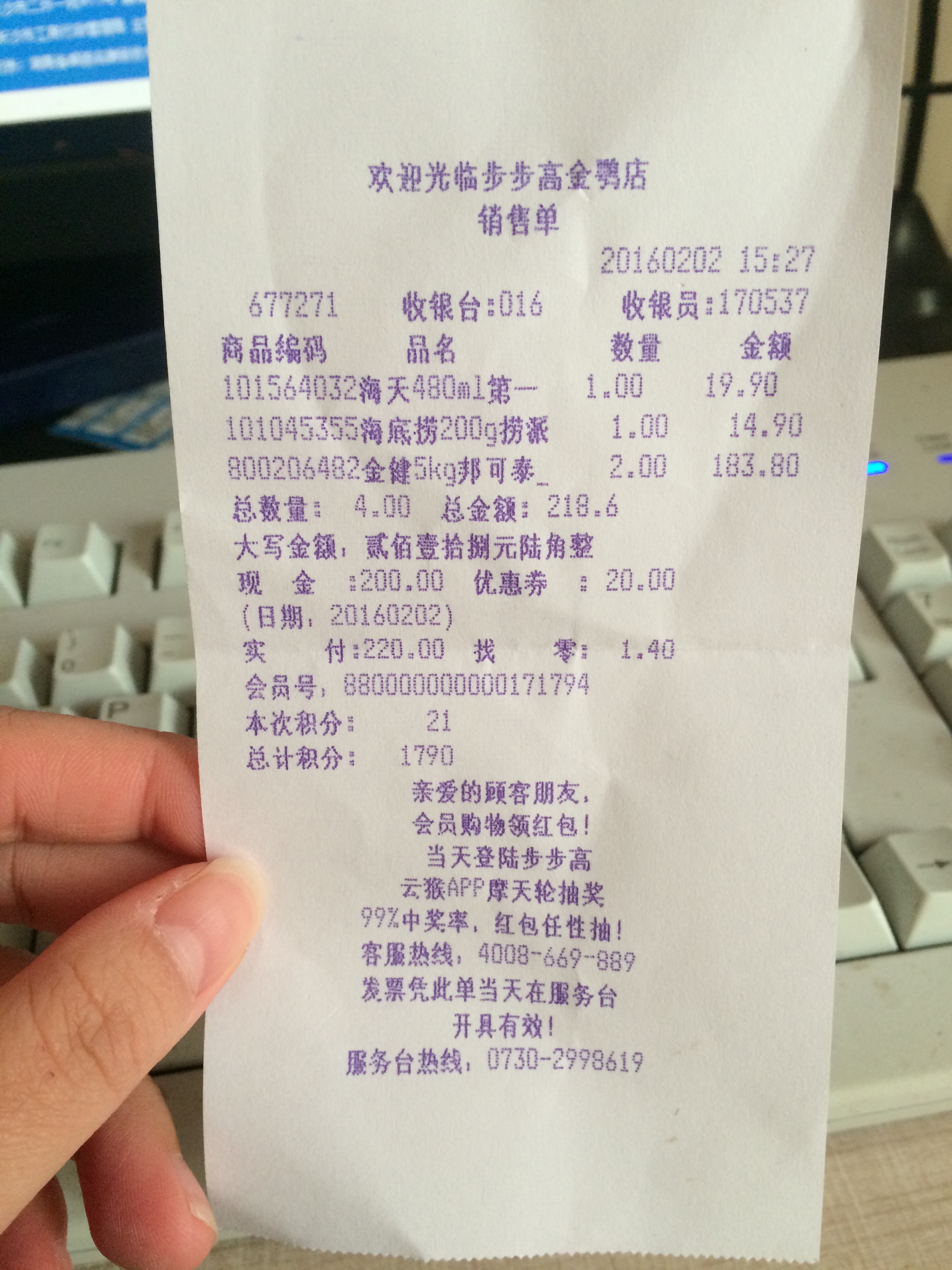 回复内容: | 经过了解,步步高促销的金健邦可泰(苏吝茉莉)5KG打折,但金健邦可泰(乌汶府)5KG不参与活动,是步步高的工作人员疏忽,没有及时修改。我站工作人员对步步高超市进行批评整改。和消费者也取得了相关联系,消费者表示满意,如果后续出现消费维权相关问题,欢迎消费者来电投诉。 |