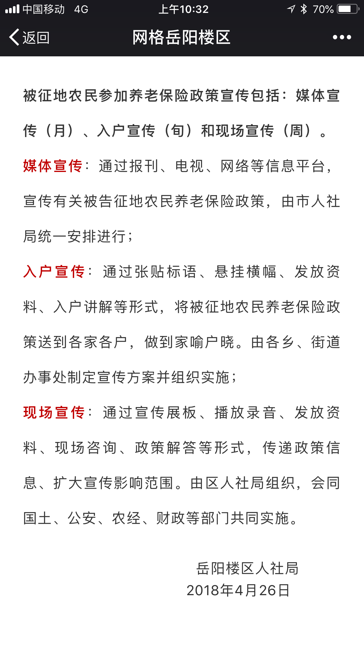 市人社局、经济开发区人社局领导:我市自2016年起制定了《中心城区被征地农民社会保障工作实施意见》,2007年7月以来因政府统一征收农村集体土地而导致失去全部或大部分土地且在征地时享有农村集体土地承包权的年满16周岁的在册农业人口。现岳阳楼区在实施这项政策,我咨询经开区什么时候实施此政策,因本人岳父岳母是经济开发区监申桥村被征地农民,现年岁已高,无劳动能力,无生活来源,希望能早日享受此项惠民政策来安享晚年,迫切咨询经开区此政策情况! |