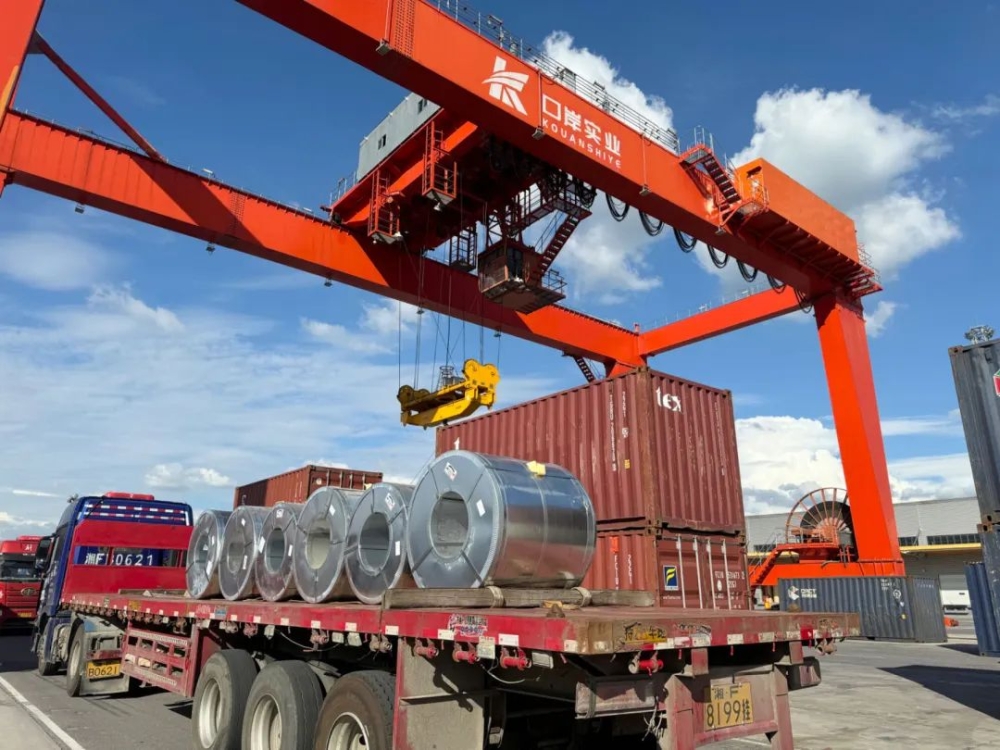 为助力企业降本提质增效,口岸公司发挥自身铁路平台资源与运营优势,探索出一条从“工厂-铁路-客户”的高效物流通道。首先,针对每家企业的实际需求对总包合同进行多次优化,协调相关部门实地走访调研,确保物流方案既符合该企业货品的专业特性,又可实现运输、仓储、供应链服务的一体化运作。其次,整合公司的车辆运力资源,降低企业从工厂到铁路这一段的短驳运输成本。同时,持续优化运输路线与装载方案。例如,在钢卷装运过程中,鉴于钢卷对车辆结构和装载加固的严格要求,口岸公司针对性引入新型台架式卷钢专用集装箱装载,不仅大幅提升了运输安全性,还显著提高了运输效率。物流园内还配备有高台仓,总体装卸效率远高于普通仓库。