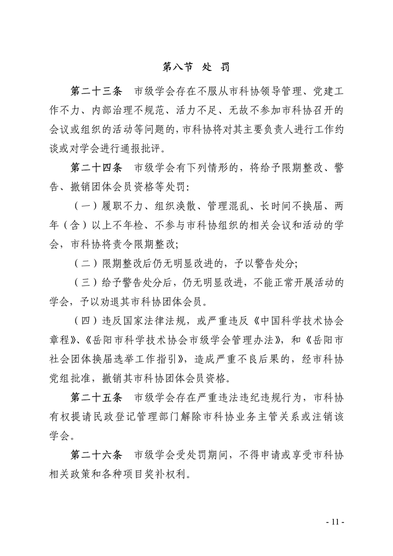 关于印发《岳阳市科学技术协会市级学会管理办法》的通知