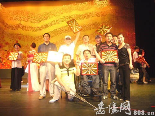 岳阳网讯:在6月25日至26日于长沙举行的“湖南省第七届残疾人文艺汇演”中,岳阳市残疾人联合会选送的节目力拔头筹,在14个市(州)、94个节目中脱颖而出,肢残人何剑雄、刘斌主演的小品《明月挂林梢》和盲人李鹏奇演奏的《三门峡畅想曲》分别夺得戏剧类和器乐类金奖,肢残人曾曦演唱的《八百里洞庭美如画》和游舰演唱的原创歌曲《选择坚强》分别夺得声乐类两个银奖,其中有3个节目将代表湖南省进京向建国六十周年献礼。鉴于岳阳市残疾人文艺工作的突出成绩,省人大常委会副主任谢勇等湖南省人民政府残疾人工作委员会领导还为岳阳市残联颁发了“湖南省残疾人文艺人才输送奖”和“湖南省第七届残疾人文艺汇演组织奖”。