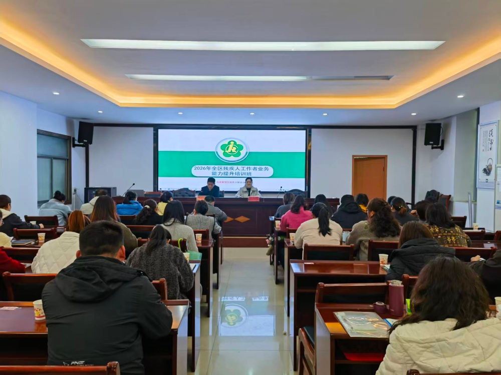 为全面提升基层残疾人工作者政策水平与服务能力,精准落实2026年残疾人各项惠民政策,切实把暖心服务送到残疾群众身边,近日,我区举办残疾人工作者业务知识培训班,各乡镇街道残联理事长、专职委员、村(社区)专职委员参加培训。
