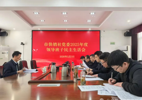 根据市委统一部署安排,3月3日下午,市供销社召开党委领导班子2025年度民主生活会,深入学习贯彻习近平新时代中国特色社会主义思想,全面贯彻党的二十届四中全会精神,一以贯之落实中央八项规定精神,健全作风建设常态化长效化机制。市社党委书记、理事会主任向风行主持会议并作表态发言。市纪委监委驻市农业农村局纪检监察组组长何雄到会指导并作点评。