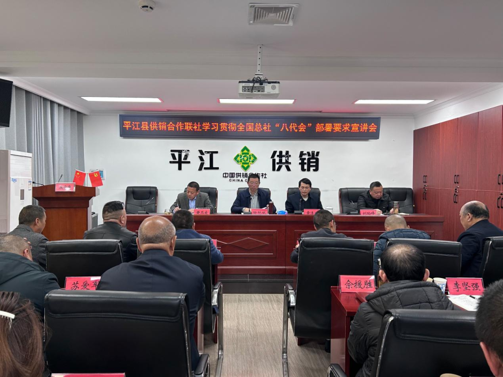 会议要求,全县供销系统要迅速行动起来,通过多种形式组织传达学习“八代会”部署要求,并将其作为一项重要政治任务抓紧抓实。一是深学细悟强信念,将八代会部署要求纳入各级学习计划,通过专题研讨、基层宣讲等形式确保学深悟透。二是对标对表谋实策,围绕八代会提出的九项重点任务和省总社《实施方案》要求,逐项梳理、细化措施,聚焦主责主业,在农资保供稳价、农业社会化服务拓展、农产品产销对接、再生资源回收利用、数字供销建设、基层社提质增效、社有企业改革壮大等方面持续用力。三是真抓实干见成效,要将学习贯彻“八代会”部署要求与完成年度各项目标任务紧密结合,与谋划明年工作及“十五五”规划紧密结合,与做好当前春耕备耕农资供应、防范化解风险等重点工作紧密结合。主动融入服务乡村振兴大局,持续深化综合改革,不断夯实基层基础,确保各项部署要求真正在平江供销系统落地生根、开花结果,以实际行动为全面推进乡村振兴贡献平江供销力量。