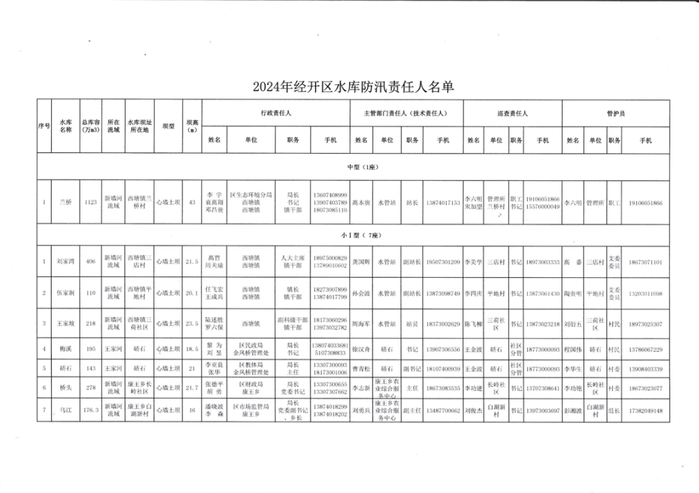 2024年经开区水库防汛责任人名单