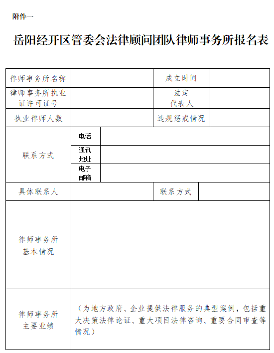 1.《岳阳经开区管委会法律顾问团队律师事务所报名表》