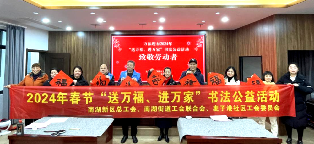 讴歌新时代,奋进新征程。近日,岳阳市各级工会开展“送万福·进万家”书法公益活动,营造喜庆祥和春节氛围,写春联、送“福”字,在墨香中为广大职工群众送去美好祝福。