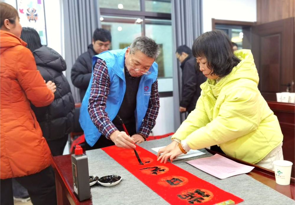 活动现场,墨香四溢,处处洋溢着春的温暖、年的祥和。志愿者们帮忙铺纸摆研,书法老师挥毫泼墨、笔走龙蛇,将美好的祝福化作一幅幅寓意吉祥的春联,带着辞旧迎新的美好祝福,为即将来临的春节增添了浓浓的喜庆氛围。