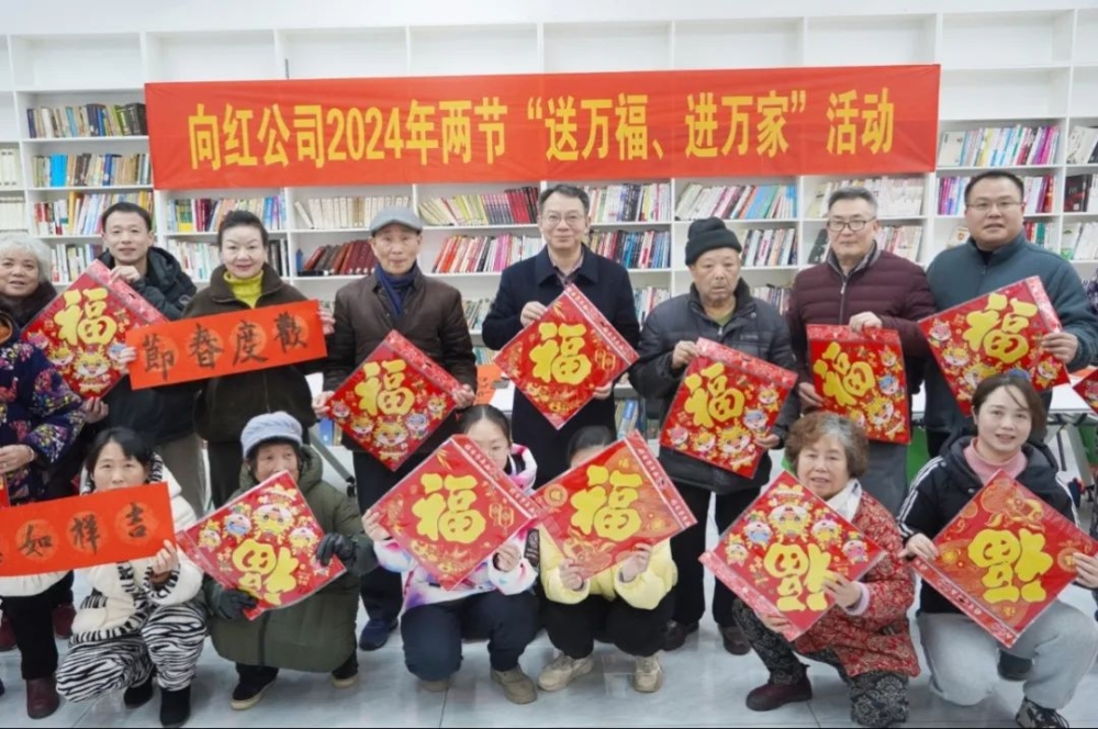 笔墨辞旧岁,书香迎新年。为大力弘扬中华优秀传统文化,切实深入开展“我为群众办实事”系列活动,在新春佳节来临之际营造喜庆祥和、积极向上的文化氛围和节日气氛,近日,向红公司工会开展了2024年两节“送万福·进万家”迎新春活动。公司副总经理、工会主席易勇参加活动,并为大家送上了福字对联。