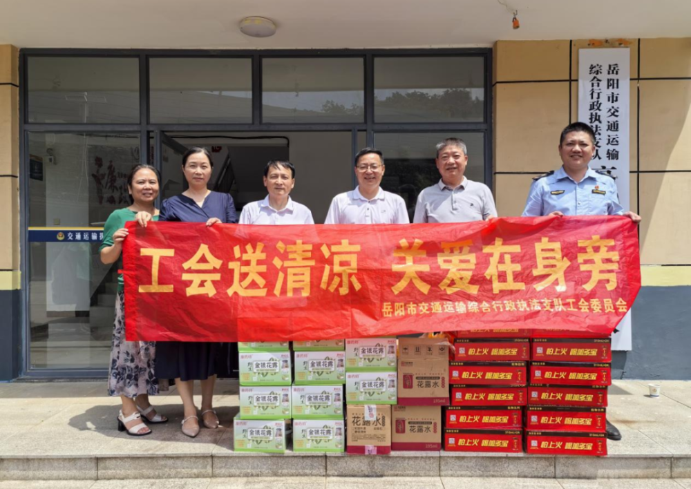 近日,岳阳市交通运输综合行政执法支队开展“工会送清凉 关爱在身旁”活动。慰问组先后前往市四中附近交通运输执法办公楼、高速公路执法大队机关、君山大队、云溪大队等地,慰问高温下坚守岗位的一线执法人员。慰问组为执法人员送上了风油精、饮料、金银花露等防暑降温用品,对一线人员的辛勤付出表示感谢,并叮嘱各大队负责人要根据天气情况合理安排工作,及时补充防暑降温物品,确保执法人员精力充沛地投入执法执勤工作。