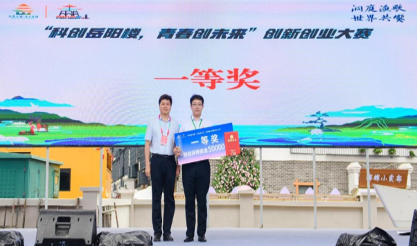 ▲为 “ 科创岳阳楼 青春创未来 ” 创新创业大赛获奖选手发放科创基金