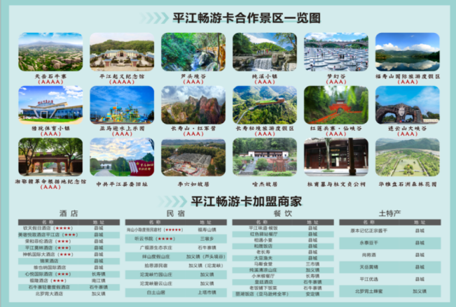 ▲“ 平江畅游卡 ” 合作景区和加盟商家
