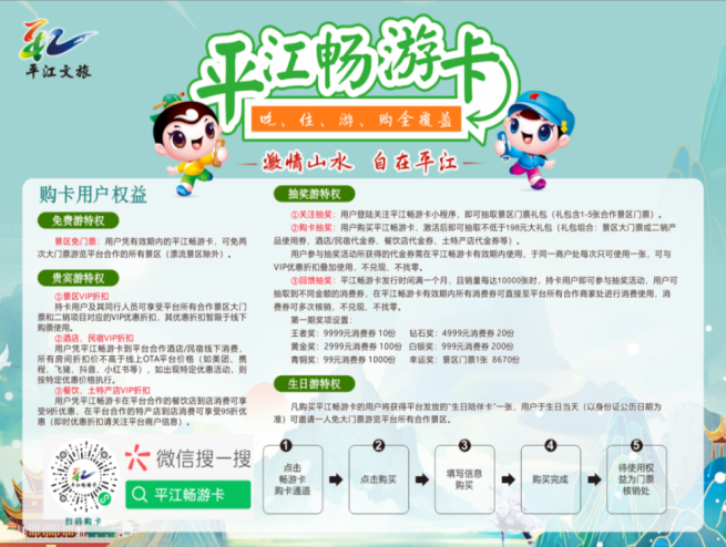 ▲“ 平江畅游卡 ” 权益主要内容,吃、住、游、购全覆盖