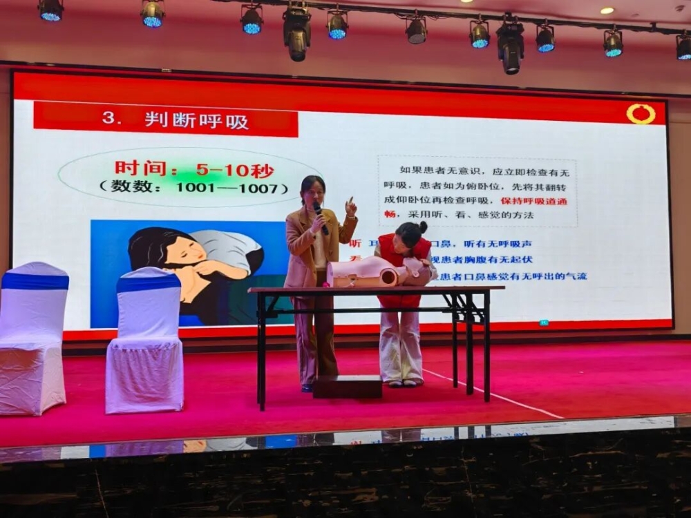 来自市应急管理局、市卫健委、岳阳职业技术学院、市消防救援支队的专家围绕安全生产法律法规、职业病防治知识普及、急救知识、消防安全知识与器材操作使用等方面,既有理论指导,更有实际操作现场演示,为参训职工带来了一堂安全健康素质大餐。