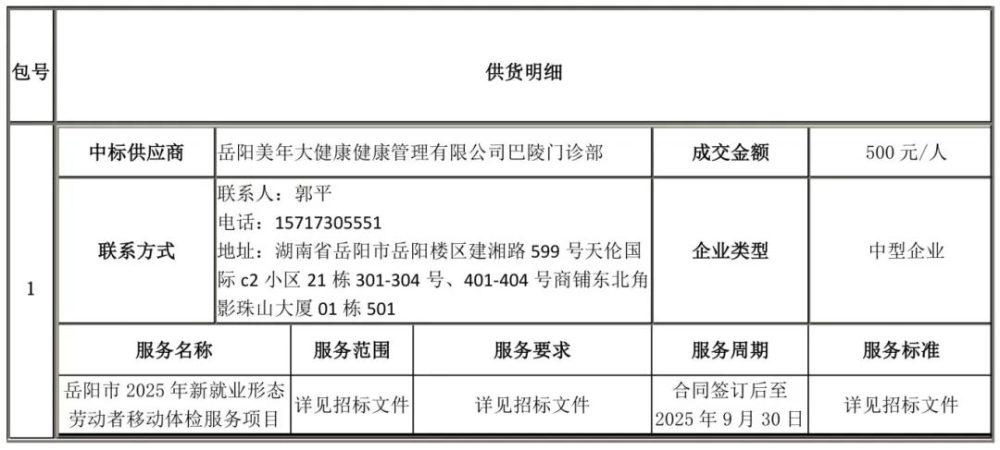 岳阳市2025年新就业形态劳动者移动体检服务项目中标公告