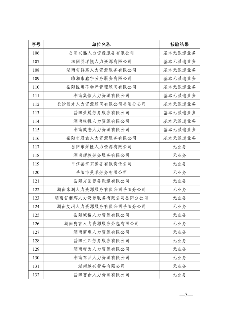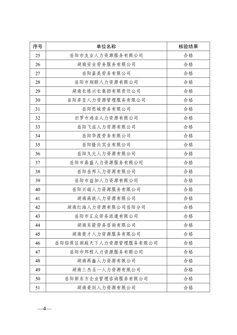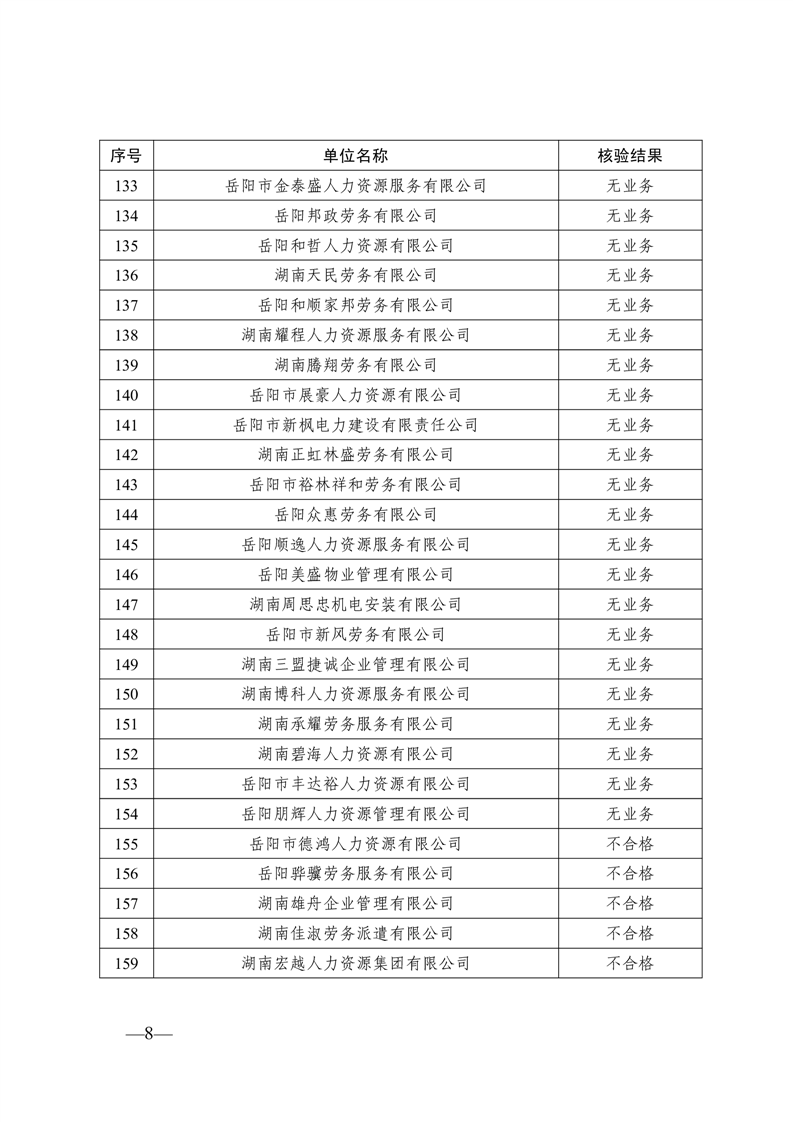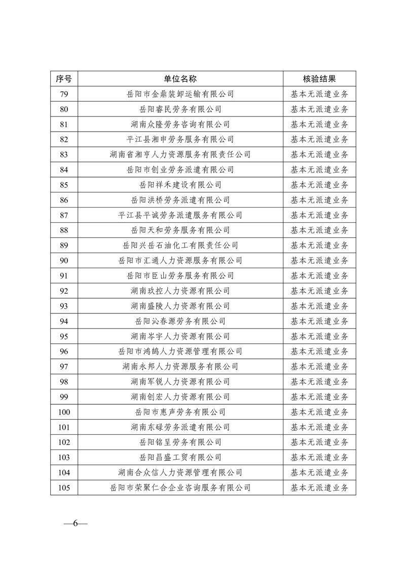 关于2024年度岳阳市劳务派遣单位核验结果的通报